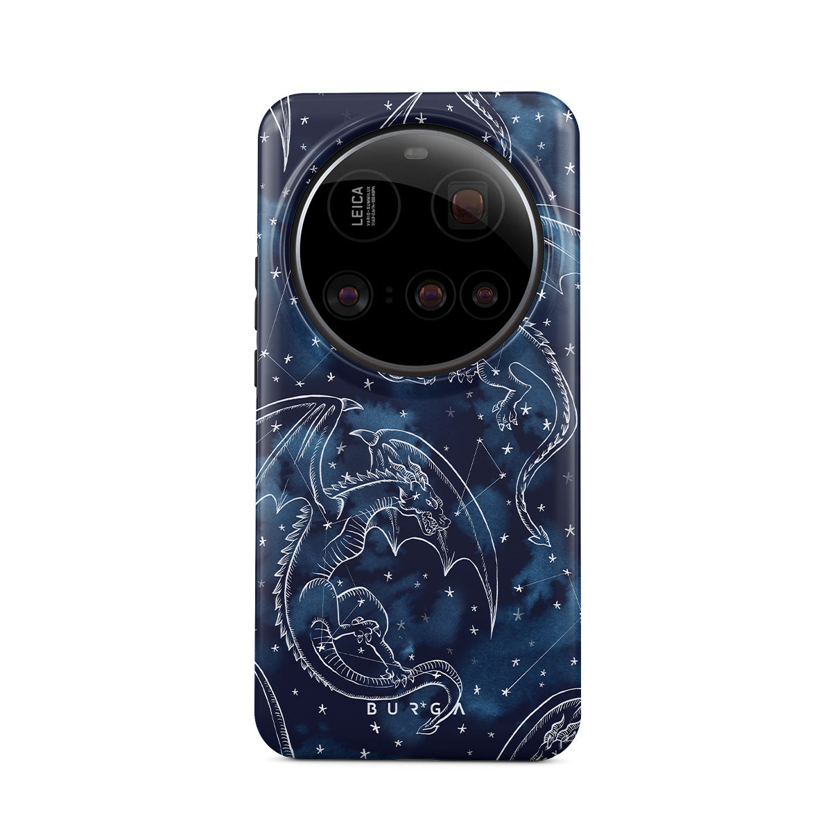 Główne elementy projektu: smoki, gwiazdy, konstelacje, ciemnoniebieskie niebo
